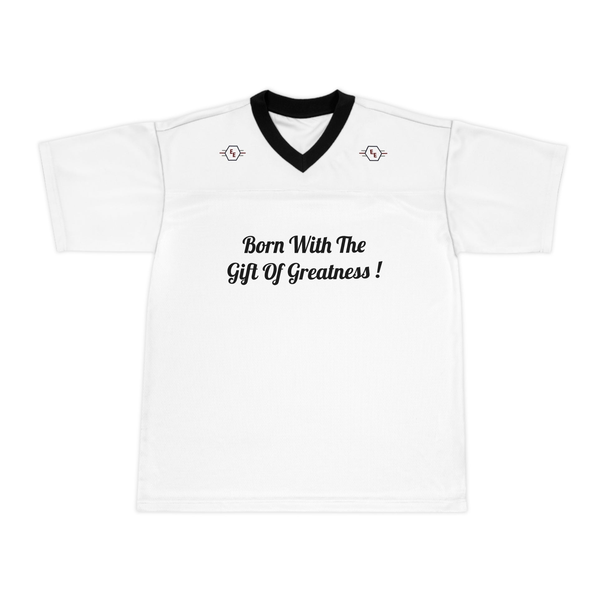 Born With The Gift Of Greatness ! Positive Affirmation with the (EE logo) on the front along with EVERETT EXPRESS #1 design on the back. This football jersey is an absolute treat for sports fans. Made with a 100% polyester top and a 100% polyester mesh bottom. It has a breathable and wick moisture away when things get heated. Very unique jersey for both men and women football fans !