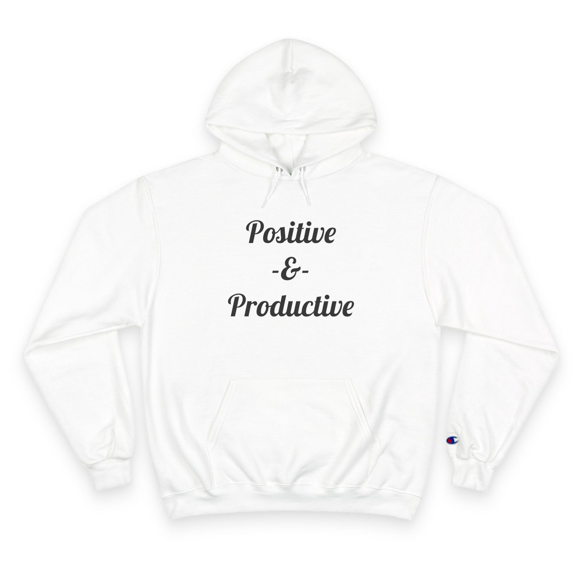 Positive-&-Productive (Positive Affirmation) design with EVERETT EXPRESS-(EE logo) on the back. This hoodie is keeping the wearer warm and toasty. It is a medium-weight two-ply fleece hoodie in a regular fit with a spacious pocket and Champion quality !