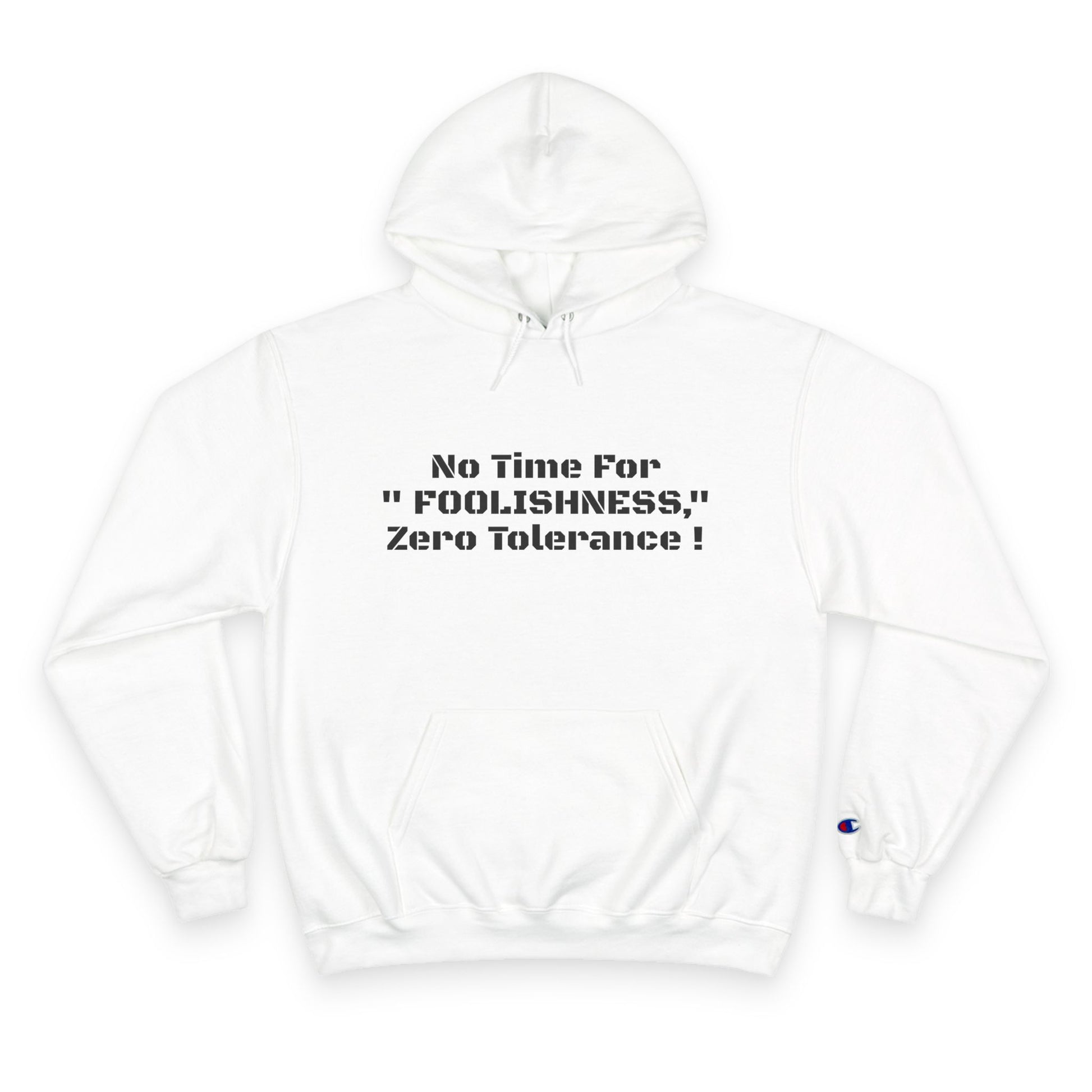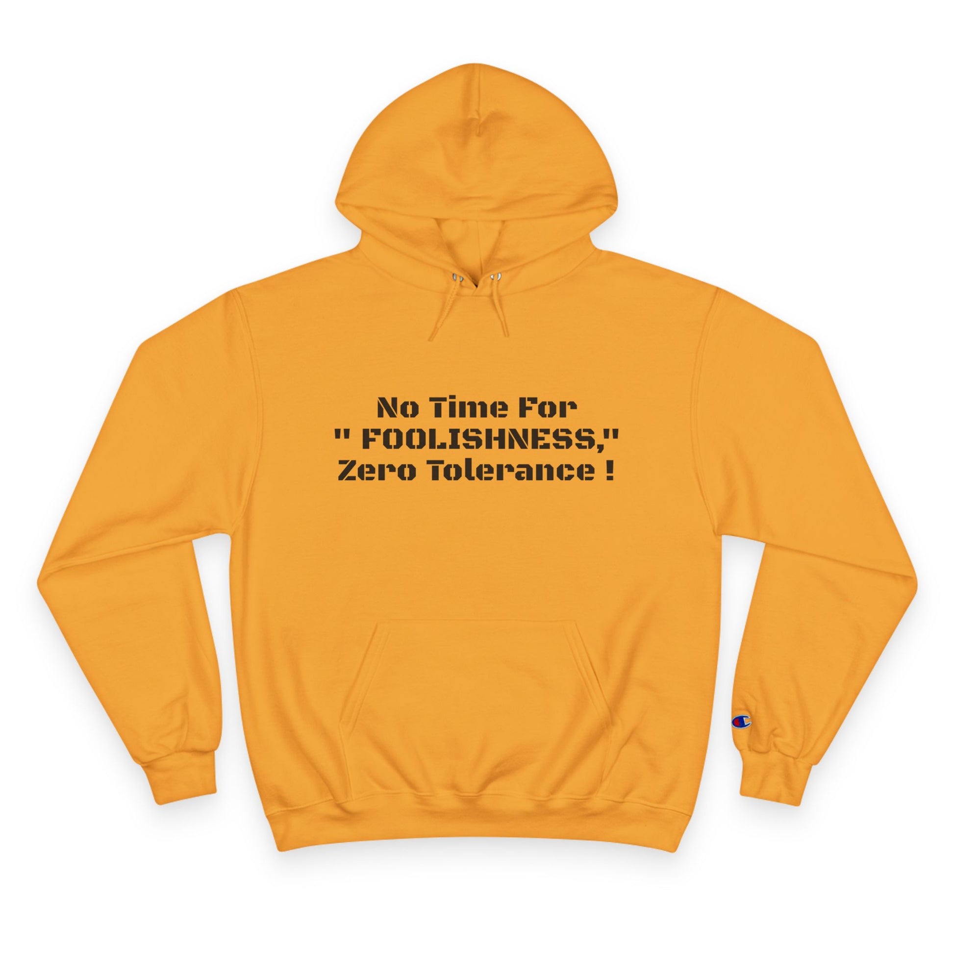 No Time For " FOOLISHNESS, " Zero Tolerance ! design with EVERETT EXPRESS-(EE logo) on the back. This hoodie is keeping the wearer warm and toasty. It is a medium-weight two-ply fleece hoodie in a regular fit with a spacious pocket and Champion quality !