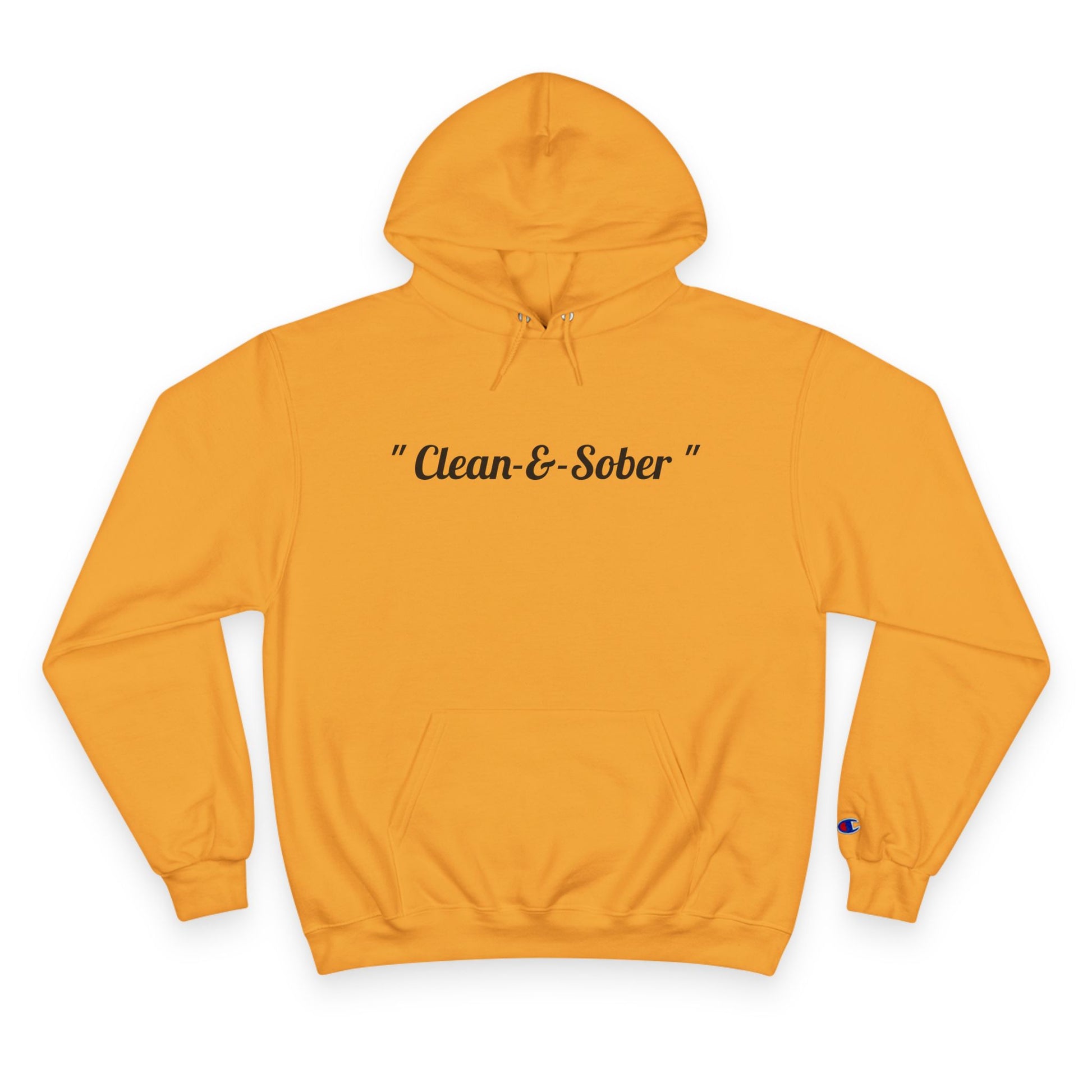 " Clean-&-Sober "(Positive Affirmation) design with EVERETT EXPRESS-(EE logo) on the back. This hoodie is keeping the wearer warm and toasty. It is a medium-weight two-ply fleece hoodie in a regular fit with a spacious pocket and Champion quality !