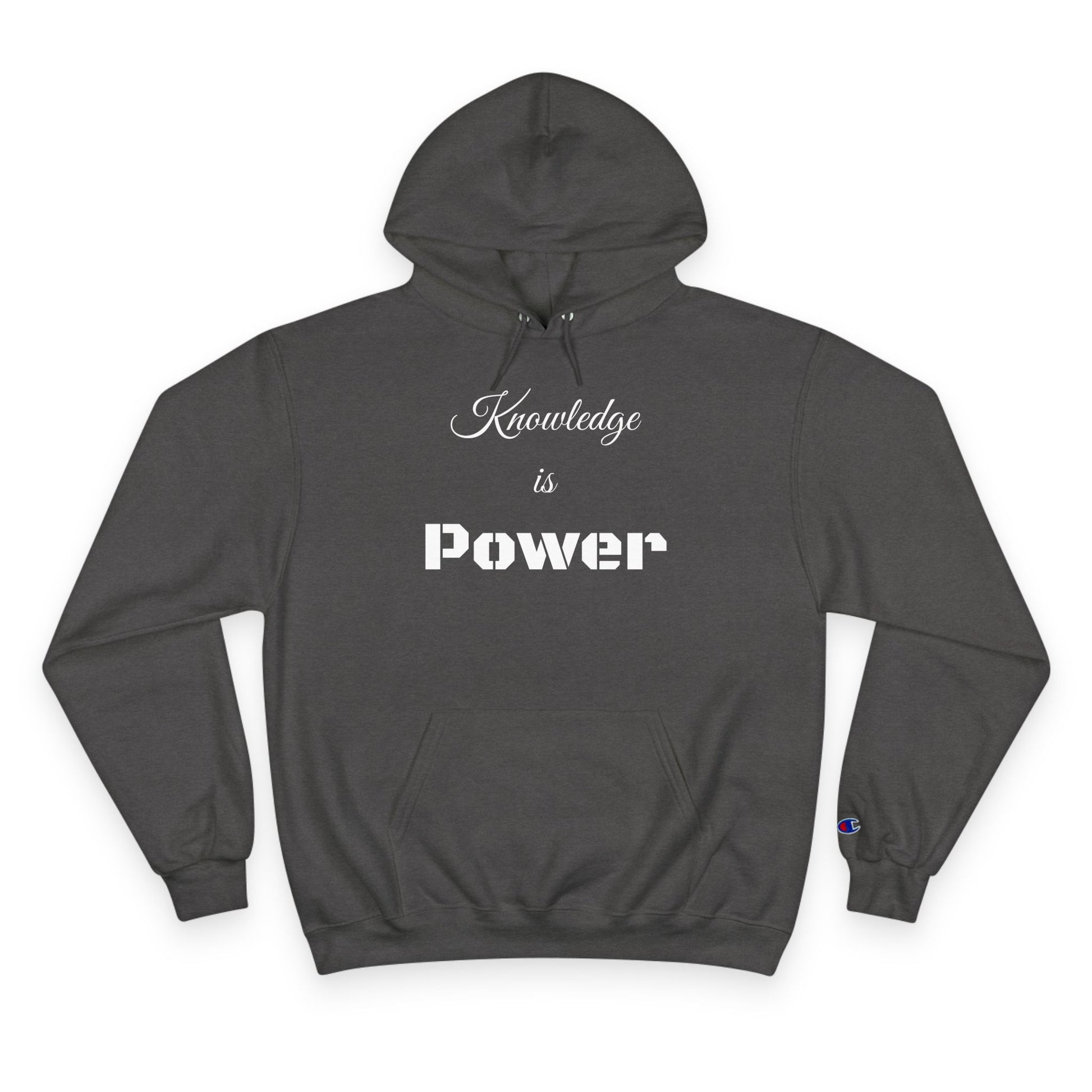 Knowledge is POWER design with the EE logo on the back. The Champion S700 eco hooded sweatshirt brings timeless style and deluxe comfort to any wardrobe. This custom Champion hoodie features Champion’s Double Dry® technology - keeping the wearer warm and toasty. It is a medium-weight two-ply fleece hoodie in a regular fit with a spacious pocket. The hoodie has the iconic "C" logo on the left sleeve and is made of up to 5% recycled polyester from plastic bottles.