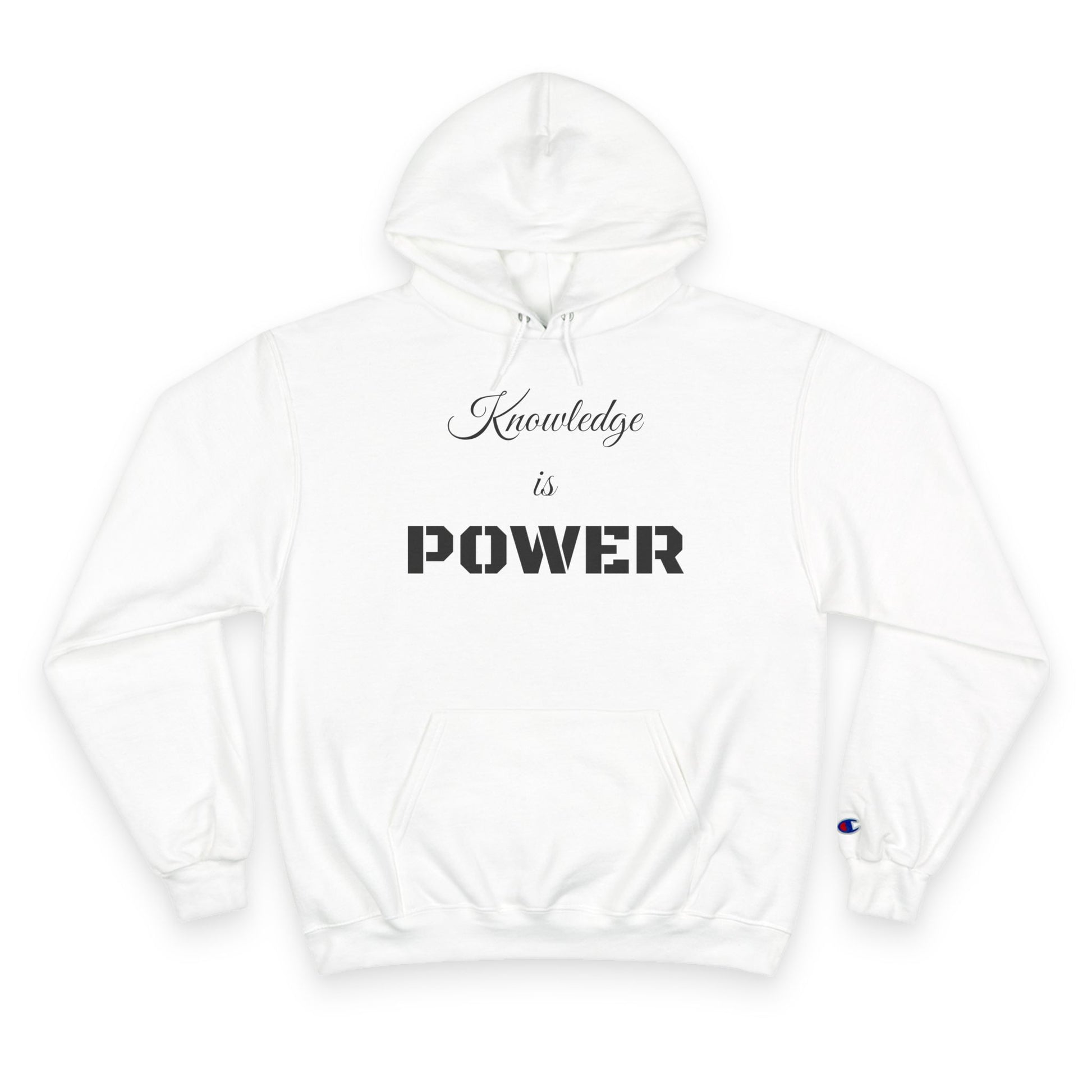 Knowledge is POWER  design with the EE-logo on the back. The Champion S700 eco hooded sweatshirt brings timeless style and deluxe comfort to any wardrobe. This custom Champion hoodie features Champion’s Double Dry® technology - keeping the wearer warm and toasty. It is a medium-weight two-ply fleece hoodie in a regular fit with a spacious pocket. The hoodie has the iconic "C" logo on the left sleeve and is made of up to 5% recycled polyester from plastic bottles.