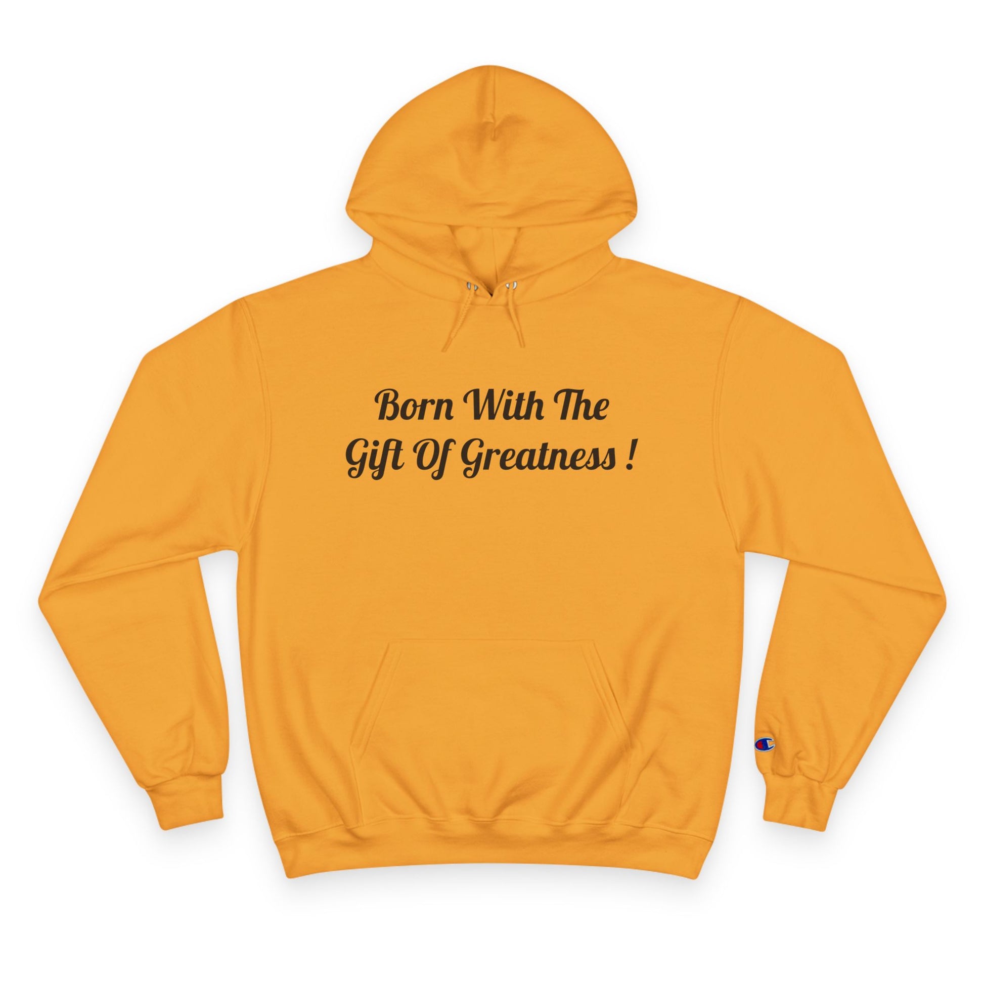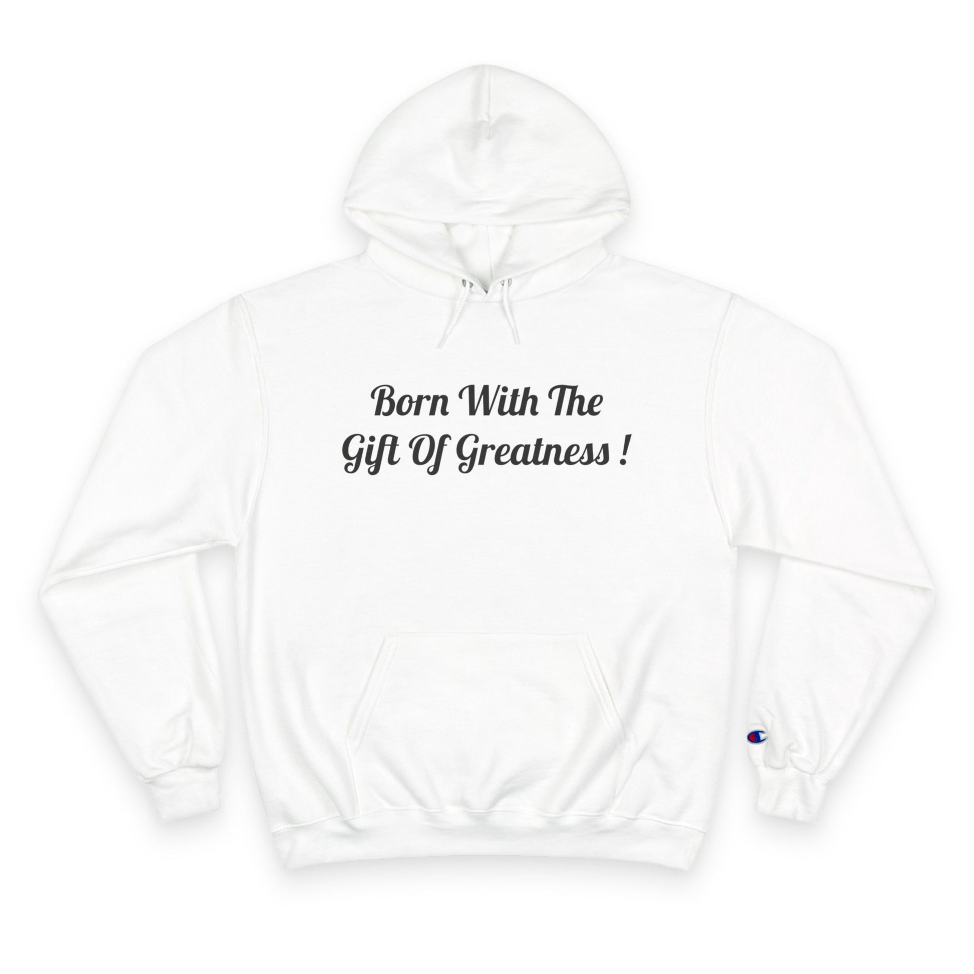 Born With The Gift Of Greatness ! (Positive Affirmation) design with EVERETT EXPRESS-(EE logo) on the back. This hoodie is keeping the wearer warm and toasty. It is a medium-weight two-ply fleece hoodie in a regular fit with a spacious pocket and Champion quality !