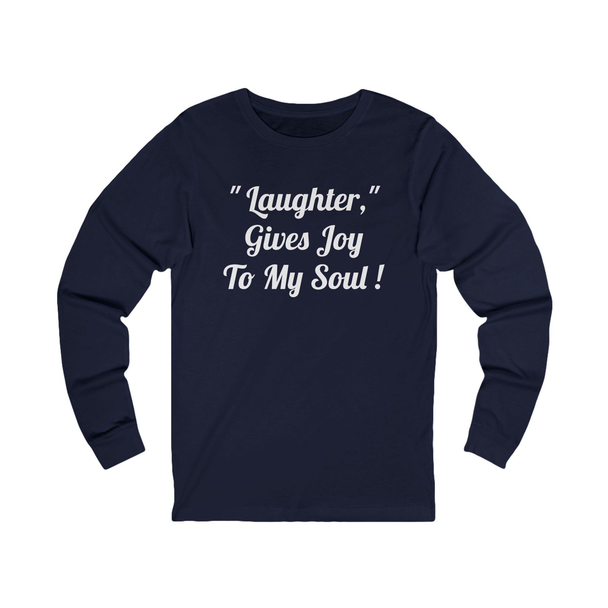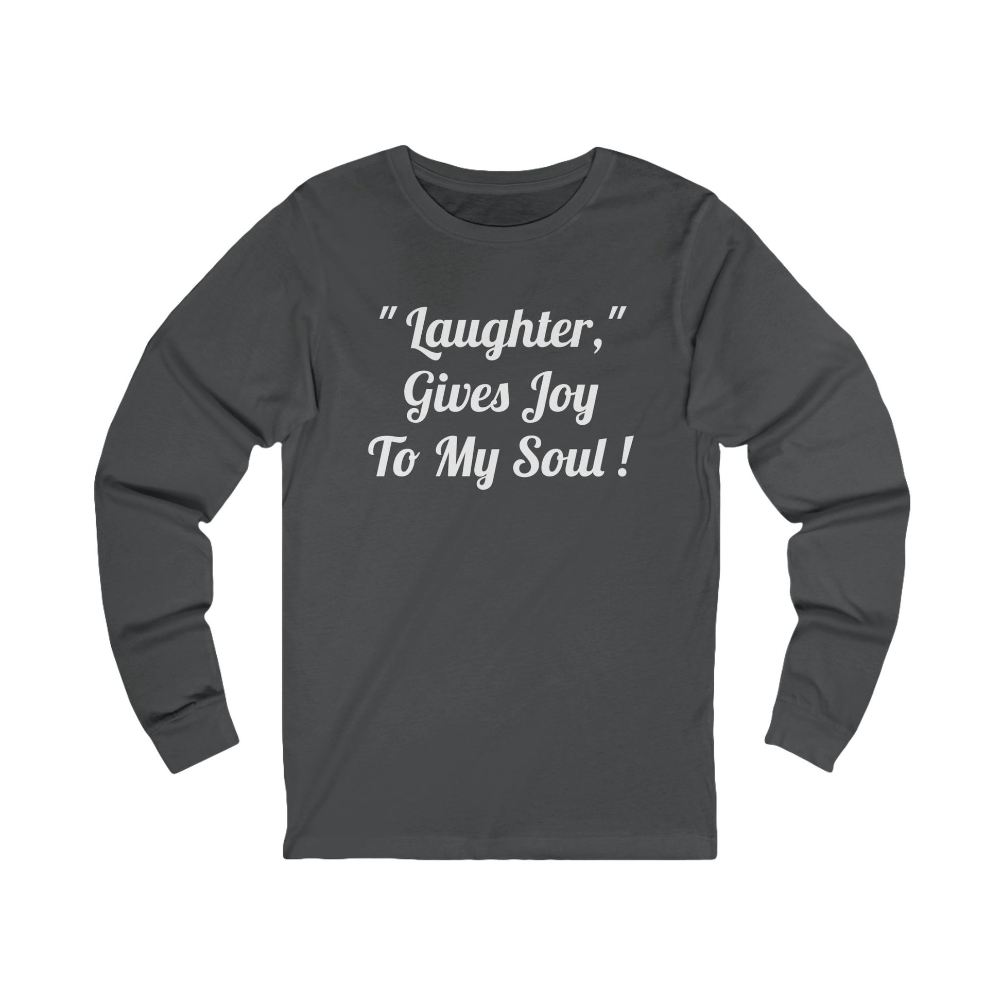 " Laughter," Gives Joy To The Soul ! design with a (EE logo) on the back. This long sleeve is like a well-loved favorite.