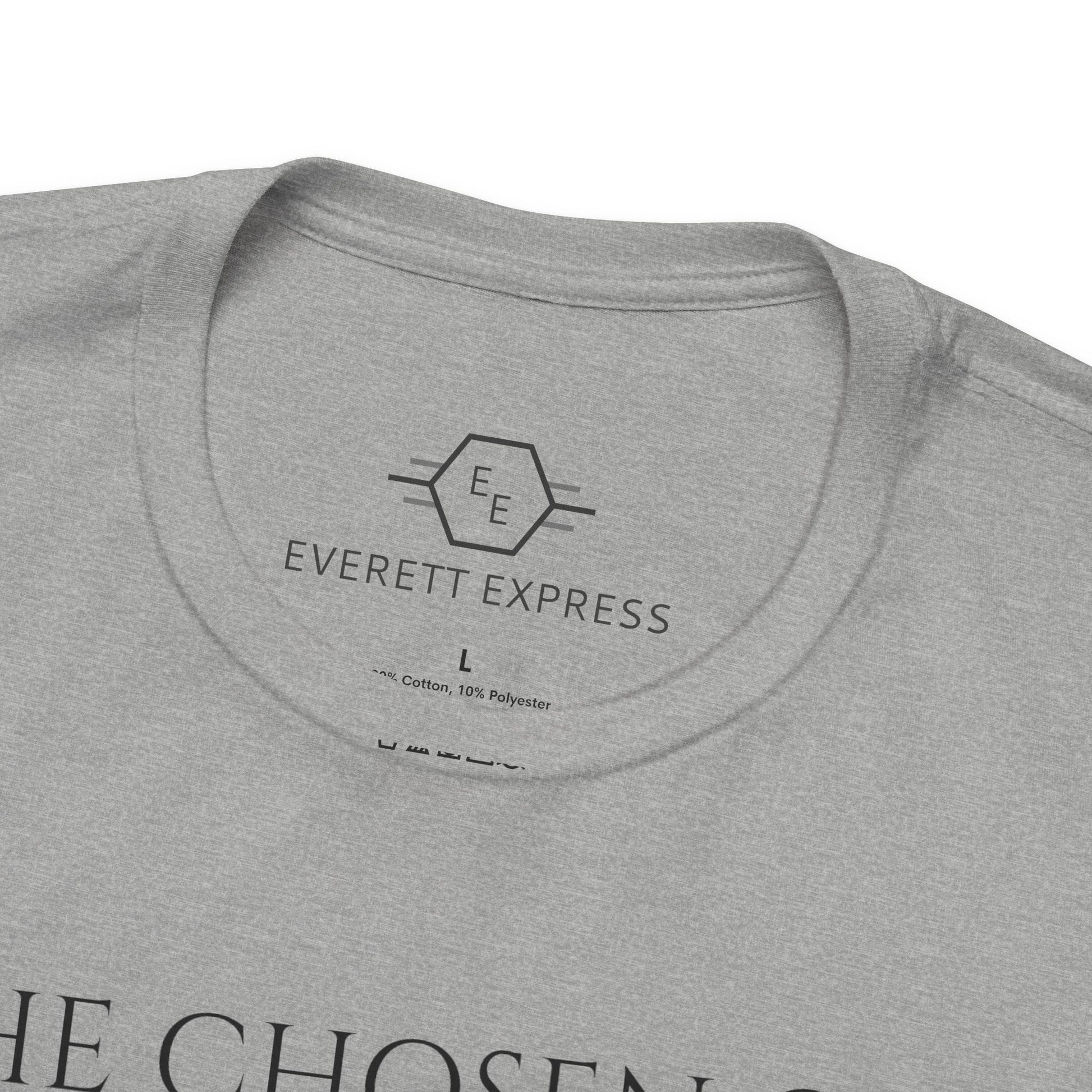 "The Chosen One," I Am Who I Am ! design with the (EE logo) on the left sleeve along with EVERETT EXPRESS-inner neck label. This short sleeve tee fits like a well-loved favorite. These t-shirts have-ribbed knit collars to bolster shaping. The shoulders have taping for better fit over time. Dual side seams hold the garment's shape for longer.