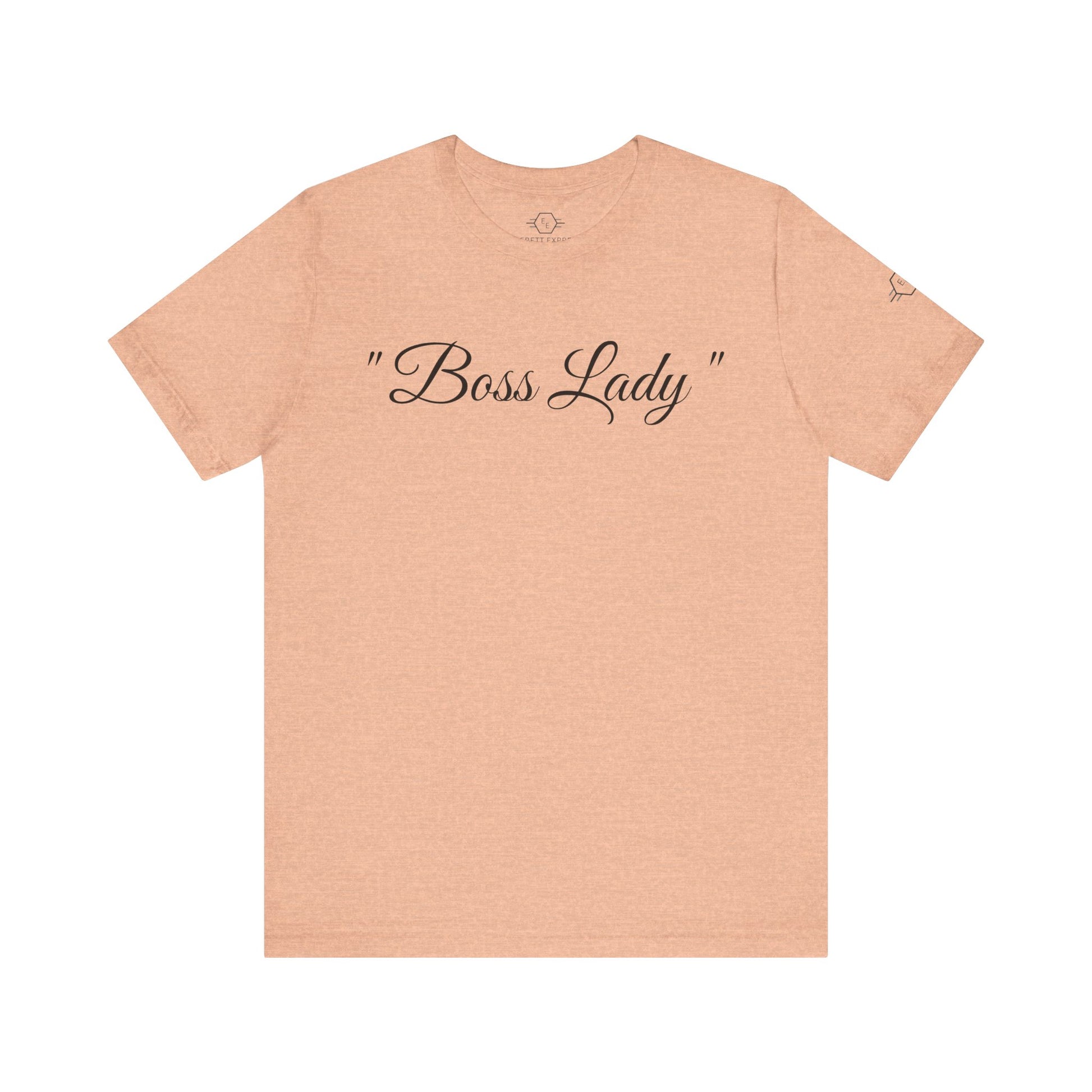 " Boss Lady " design with the (EE logo) on the left sleeve along with EVERETT EXPRESS-inner neck label. This short sleeve tee fits like a well-loved favorite. These t-shirts have-ribbed knit collars to bolster shaping. The shoulders have taping for better fit over time. Dual side seams hold the garment's shape for longer.