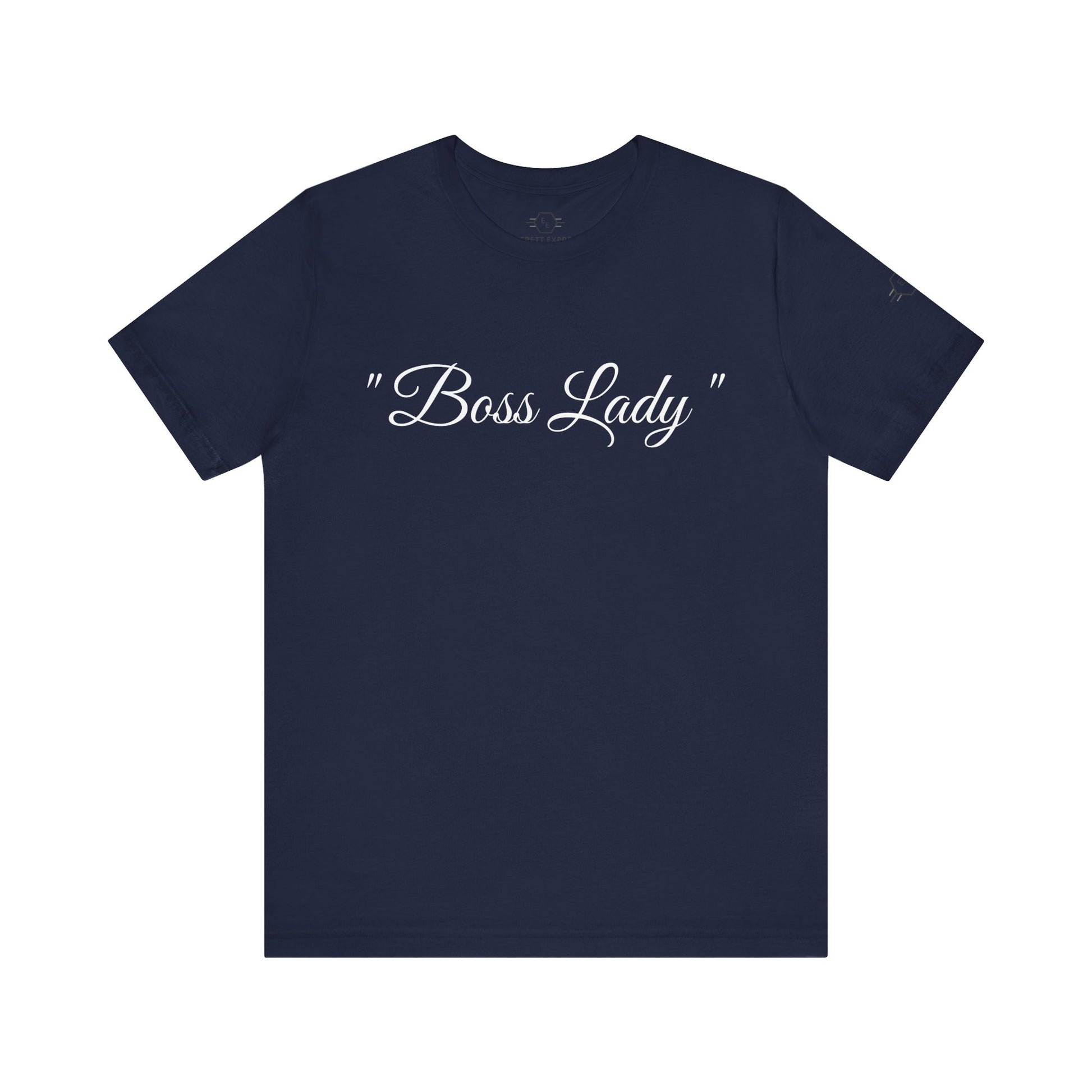" Boss Lady " design with the (EE logo) on the left sleeve along with EVERETT EXPRESS-inner neck label. This short sleeve tee fits like a well-loved favorite. These t-shirts have-ribbed knit collars to bolster shaping. The shoulders have taping for better fit over time. Dual side seams hold the garment's shape for longer.