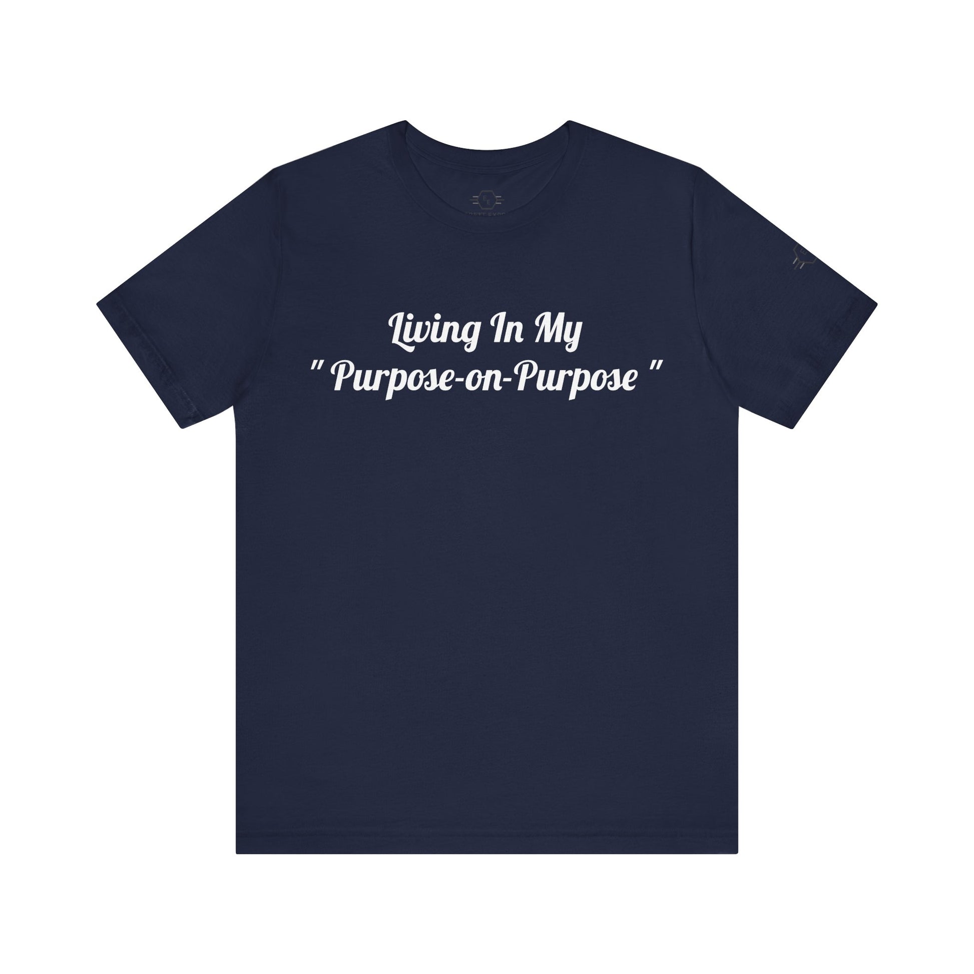 Living In My " Purpose-on-Purpose " design with the (EE logo) on the left sleeve along with EVERETT EXPRESS-inner neck label. This short sleeve tee fits like a well-loved favorite. These t-shirts have-ribbed knit collars to bolster shaping. The shoulders have taping for better fit over time. Dual side seams hold the garment's shape for longer.
