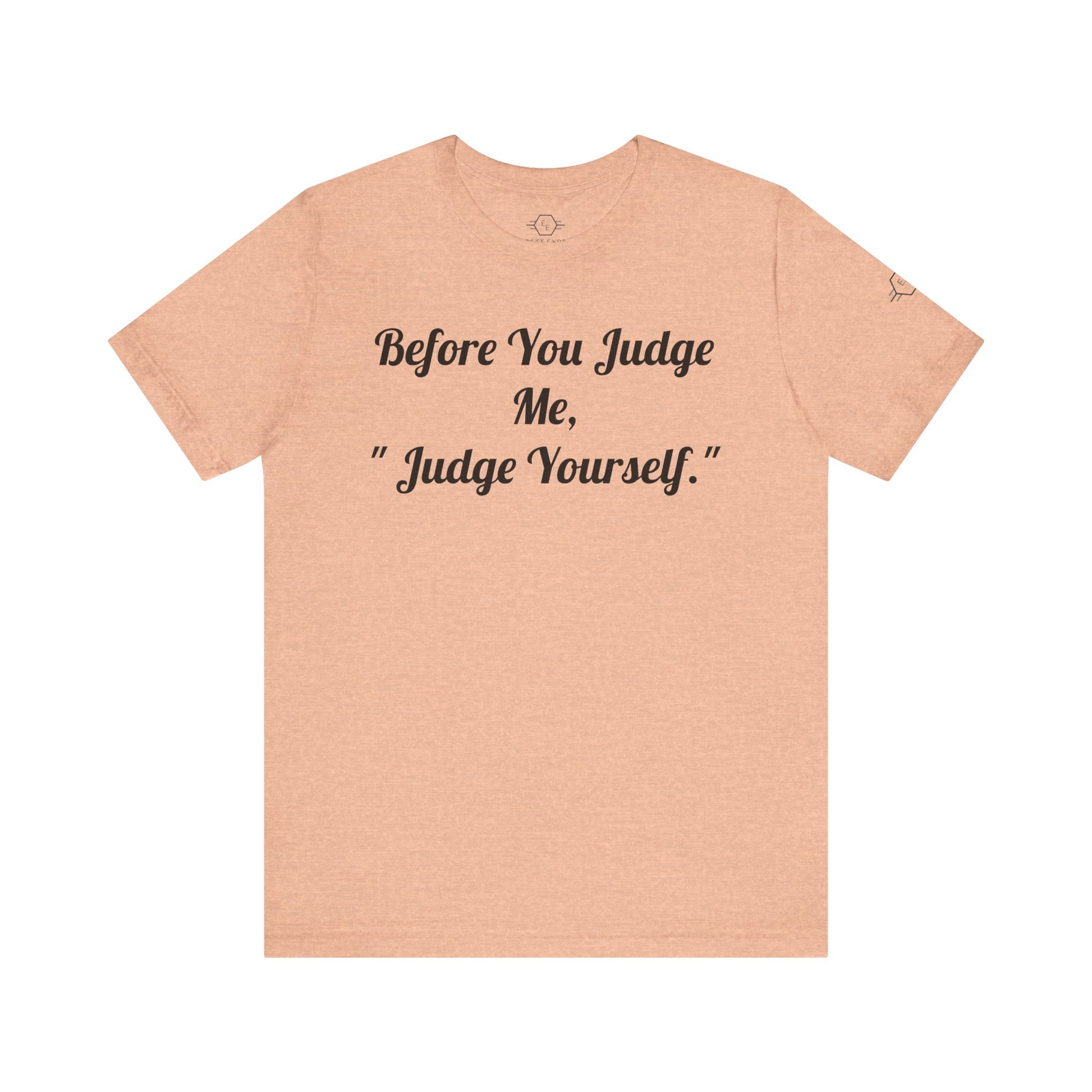 Before You Judge Me, " Judge Yourself. " design with the (EE logo) on the left sleeve along with EVERETT EXPRESS-(Positive Affirmations) inner neck label. This short sleeve tee fits like a well-loved favorite. These t-shirts have-ribbed knit collars to bolster shaping. The shoulders have taping for better fit over time. Dual side seams hold the garment's shape for longer.